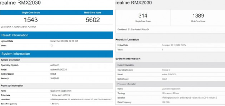 1月2日,據(jù)外媒gsmarena報(bào)道,realme將于1月6日正式發(fā)布一款新機(jī)——realme 5i,目前這部手機(jī)已經(jīng)在Geekbench跑分網(wǎng)站現(xiàn)身。據(jù)悉,其型號為RMX2030,在Geekbench 4上的單核跑分為1543分,多核跑分為5602分,而在Geekbench 5上,其單核跑分為314分,多核跑分為1489分。