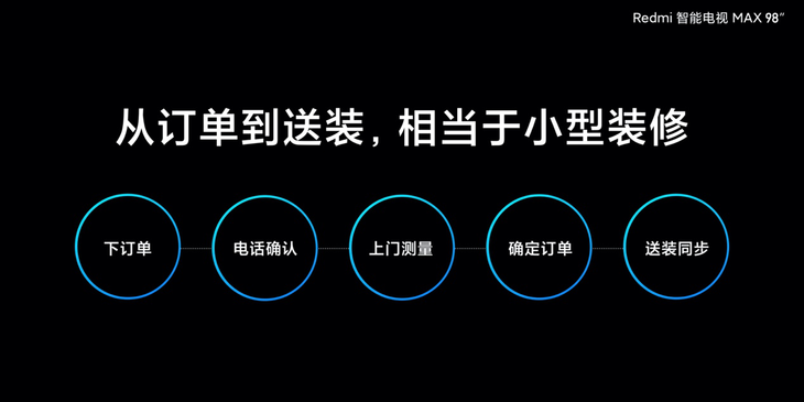 用戶在小米商城或小米之家下單以后,小米客服就會第一時間和用戶聯系溝通確認后續(xù)送裝事宜,預約上門勘測等服務安排,以及其他咨詢和售后問題。接著小米工程師就會在三天之內上門進行勘測并出具一份勘測報告,以確定用戶家中是否能夠安裝Redmi智能電視MAX 98”。