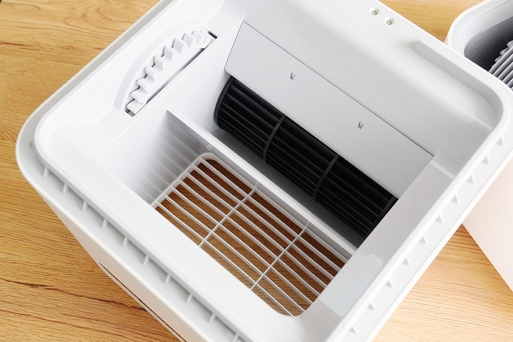 智米純凈型加濕器2可以通過頂部直接加水,在頂部有格柵,直接將水通過格柵導入加濕器的水槽內(nèi)即可,加水非常的方便。加濕器的電機位于加濕器的上半部分,有擋水板保護,因此直接倒水也不會造成設備損壞。