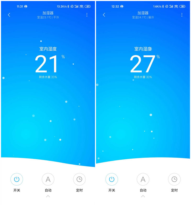 在米家APP上可以顯示室內(nèi)的溫度、濕度、剩余水量。
