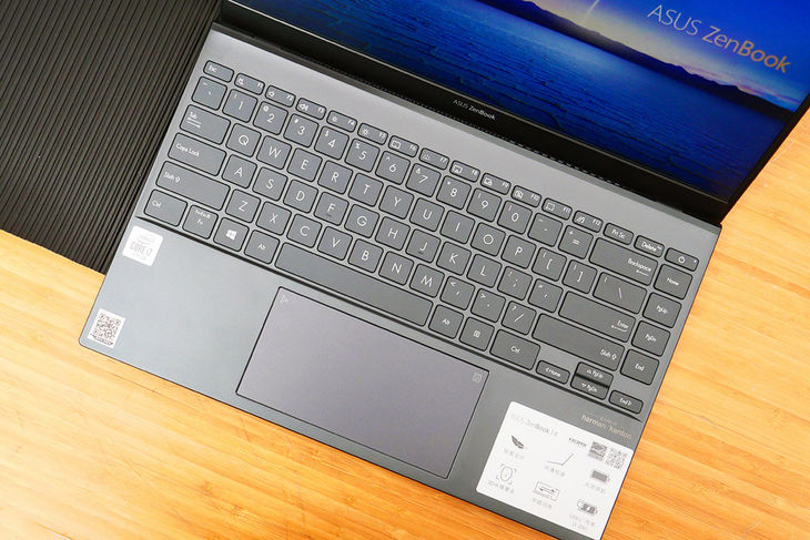 華碩靈耀14的鍵盤距離邊緣僅6mm,充分利用了有限的空間,鍵盤間距為19.05mm。每一個按鍵都有1.4mm的鍵程,打字手感非常好。還將數(shù)字按鍵融入觸控板中,實現(xiàn)了全鍵盤的操作。