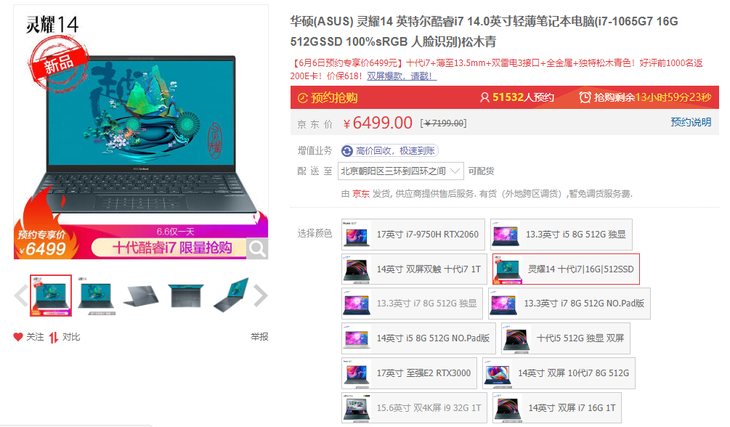 6499元超值之選 華碩靈耀14發(fā)售保價618