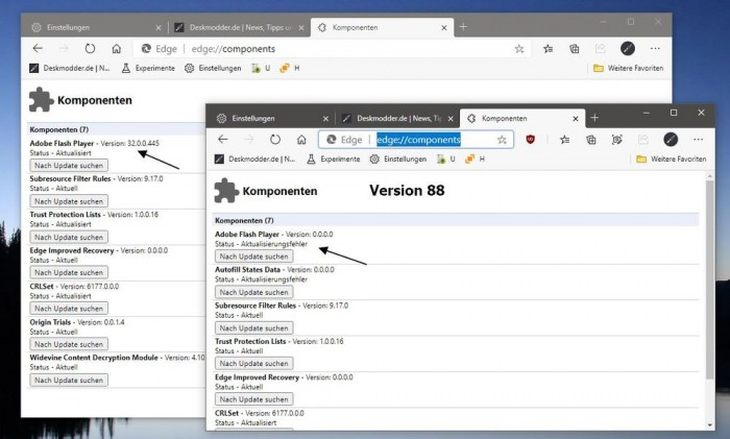 Microsoft Edge Beta 88 開始,Adobe Flash 功能和支持將被正式移除。