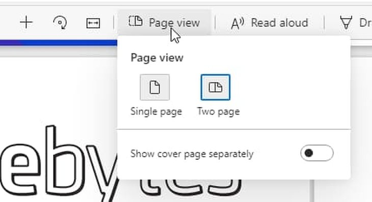 從 Microsoft Edge 88 開始,用戶將能夠以單頁或兩頁書的視圖查看PDF文檔。要改變視圖,用戶點擊工具欄上的“頁面視圖”按鈕。