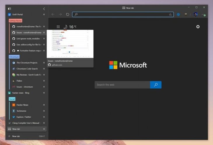 垂直標簽頁還可以提供更多的空間來快速多選、關閉和重新排序標簽頁,從而更容易組織多個標簽頁。當用戶在使用垂直標簽頁時想要關注并查看更多的網(wǎng)頁時,他們可以隨時折疊窗格,并在他們想要與特定標簽頁進行交互時,只需懸停即可展開窗格。
