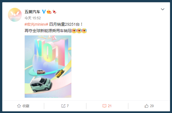 銷量超特斯拉!五菱宏光MINI EV四月再奪冠