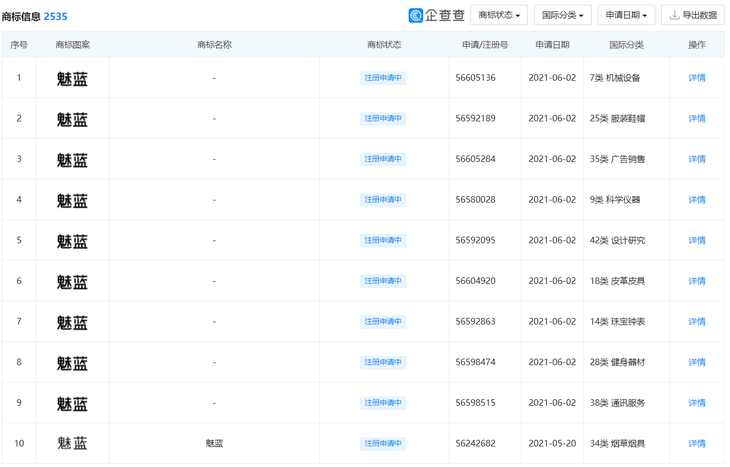 此前,企查查信息顯示,珠海市魅族科技有限公司再次申請注冊多個“魅藍(lán)”商標(biāo),國際分類涉及通訊服務(wù)、科學(xué)儀器、廣告銷售、網(wǎng)站服務(wù)等??磥砥放频幕貧w幾乎是板上釘釘了,剩下的懸念就是手機業(yè)務(wù)會否重啟。