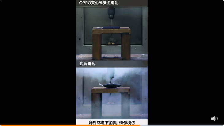 OPPO發(fā)布夾心式安全電池技術,穿刺沖擊后安然無恙