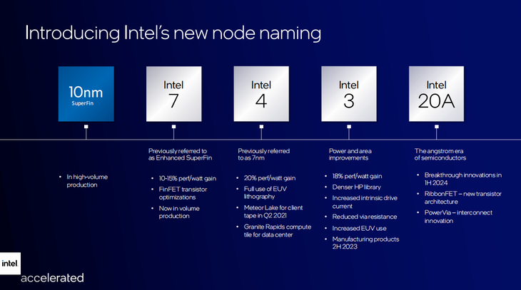 在7月下旬,英特爾還剛剛公布了公司有史以來最詳細的制程工藝和封裝技術路線圖,展示了一系列底層技術創(chuàng)新,這些創(chuàng)新技術將不斷驅動從現(xiàn)在到2025年乃至更遠未來的新產品開發(fā)。同時,英特爾對今天以及未來的制造節(jié)點采用全新命名法則,例如Intel 7、Intel 4、 Intel 3、Intel 20A等等。在筆者看來,英特爾如此高調地公布未來的制程工藝和封裝技術路線,估計已有了很足的把握。