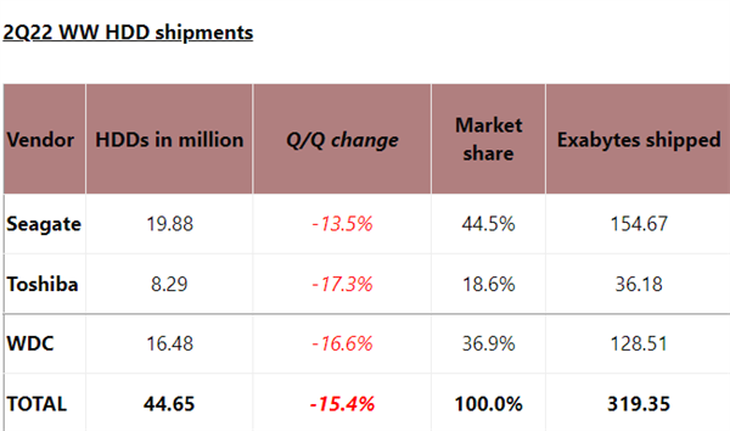 ? ? 機(jī)械硬盤(pán)本就遭遇著被SSD取代的艱難時(shí)刻,沒(méi)想到又遇到PC電腦空前的低迷危機(jī),境況可想而知了。來(lái)自StorageNewsletter和Trendfocus聯(lián)合發(fā)布的數(shù)據(jù)顯示,今年第二季度,全球機(jī)械硬盤(pán)出貨量為4465萬(wàn)塊,環(huán)比下滑多達(dá)15.4%。