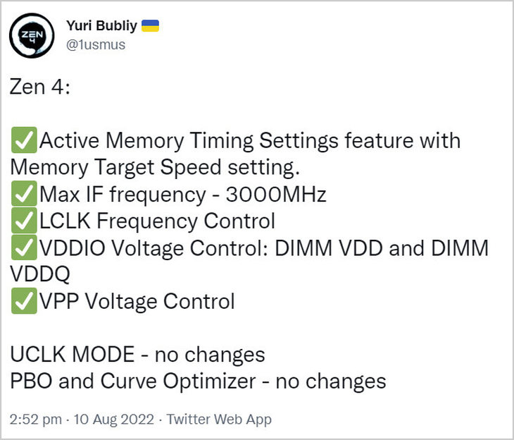 根據(jù)國外網(wǎng)友的爆料,AMD Zen 4處理器的甜品內(nèi)存頻率為DDR5-6000MHz。