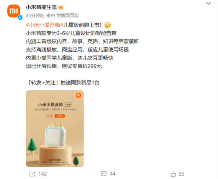 專為3-6歲兒童設(shè)計(jì):小米推出小愛音箱兒童版