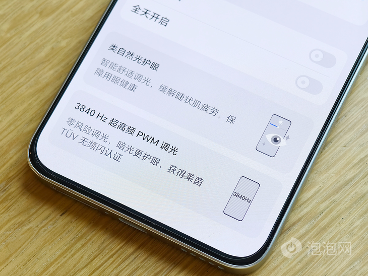 護眼成為榮耀在手機屏幕上的一大優(yōu)勢,此次榮耀90 GT也具備了旗艦的護眼表現(xiàn),支持3840Hz超高頻PWM調(diào)光,并且通過了德國萊茵TüV無頻閃認證,達到零風(fēng)險調(diào)光級別。