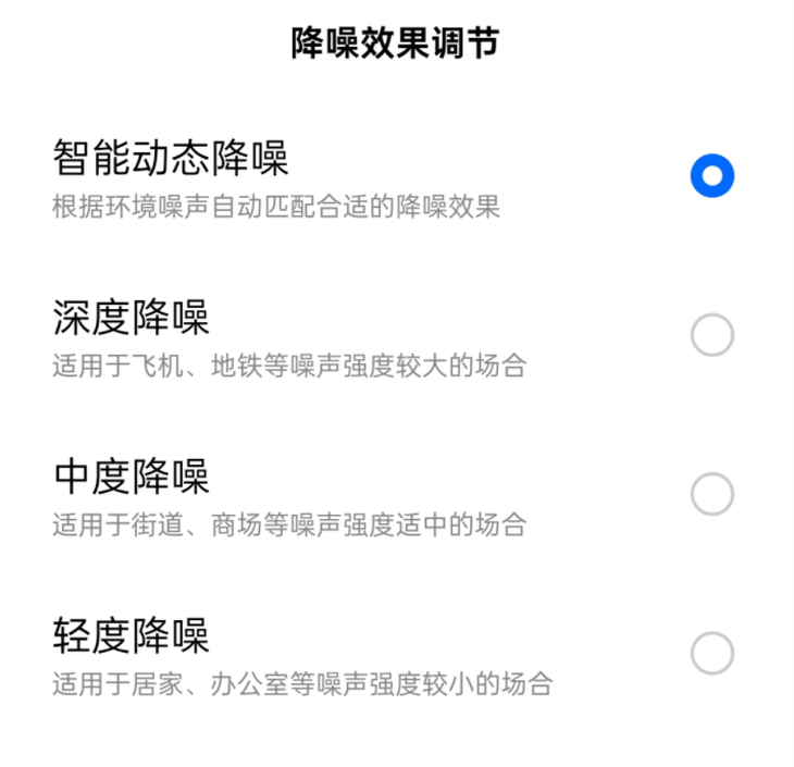 用戶也可以根據(jù)自己的需求手動調(diào)整降噪模式,支持輕度、中度、深度三種降噪模式。
