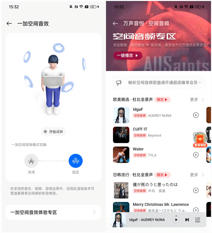 一加還提供了空間音效體驗(yàn)專區(qū),可以聆聽高品質(zhì)的杜比全景聲音源。試聽一加 Buds 3 的空間音頻音樂,可以很明顯的感受到音樂的層次感,人聲仿佛在耳邊傳出,然后是環(huán)繞的音樂的聲音,整體聲音更加立體,而不是在一個平面當(dāng)中。