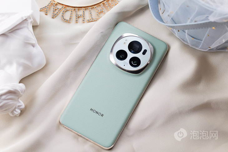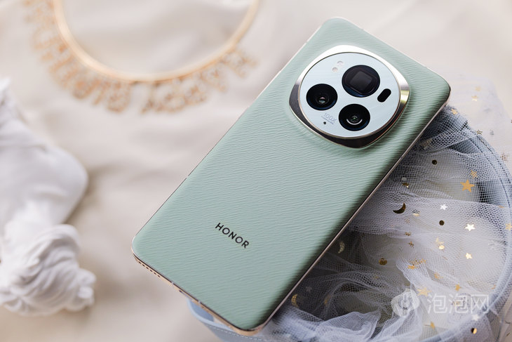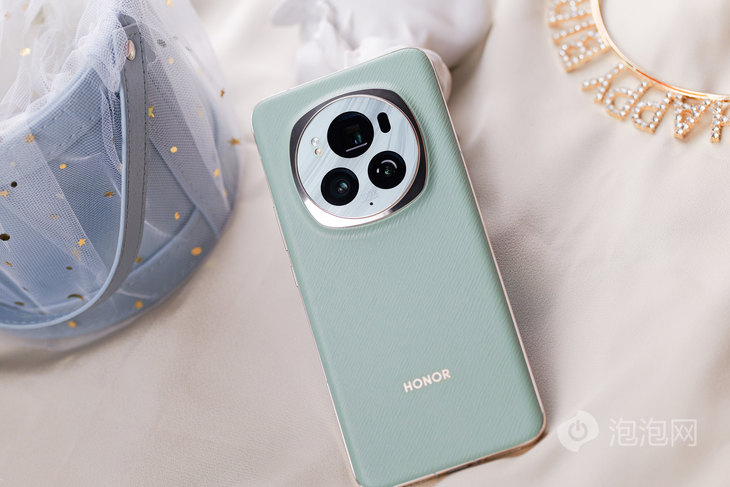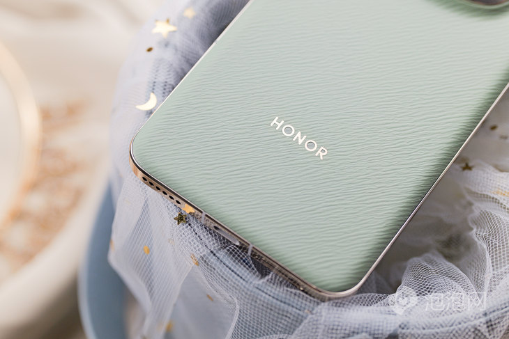 ? ??圖中為榮耀Magic6 Pro全新的“麥浪綠”新配色,素皮的材質(zhì)上結(jié)合麥穗壓花紋理設(shè)計(jì),就如配色名稱一樣,在視覺上有一種搖曳起伏的青稞麥浪即視感。