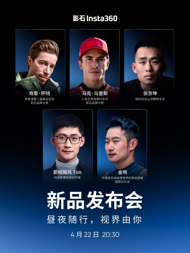 影石邀請五位來自全球運動與科技圈的重磅嘉賓:三屆冬奧會單板滑雪冠軍肖恩·懷特(Shaun White)、八冠王傳奇摩托車手馬克·馬奎斯(Marc Márquez)、國際知名山地攀爬車手張京坤、自由潛世界紀(jì)錄保持者金明,以及科技影像內(nèi)容創(chuàng)作者影視颶風(fēng)Tim,共同體驗影石新品的創(chuàng)新魅力,彰顯其在極限運動與智能影像領(lǐng)域的深度融合與全球影響力。