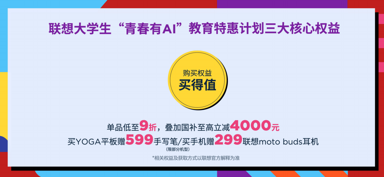 聯(lián)想一直以來都關(guān)注高校學(xué)子的需求,此前官宣推出了聯(lián)想大學(xué)生“青春有AI”教育特惠計(jì)劃。在完成學(xué)生身份認(rèn)證后,購買筆記本AI PC、AI手機(jī)、平板等好物即可享單品低至9折的專屬價,單品最高直降千元,疊加國家“以舊換新”補(bǔ)貼綜合優(yōu)惠最高可達(dá)4000元。