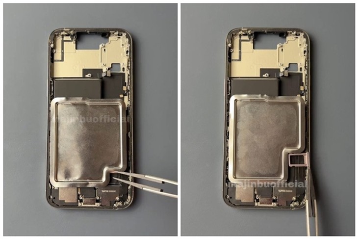 iPhone 17 Pro電池,右圖為國行版(帶SIM卡槽)