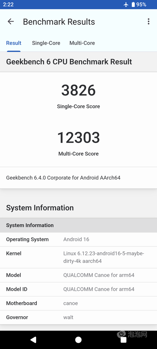 針對(duì)CPU,我們采用的GeekBench V6.4進(jìn)行測(cè)試,結(jié)果顯示,驍龍8至尊版CPU單核成績(jī)達(dá)到了3826分,多核成績(jī)達(dá)到了12303分。