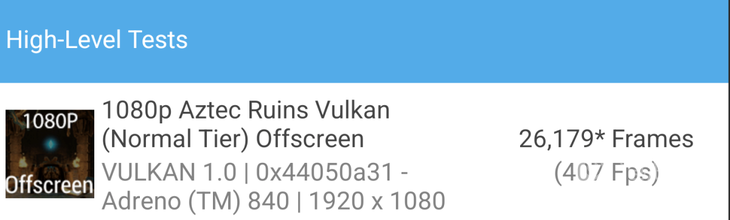針對(duì)GPU,我們選擇的是GFXBench V5.1進(jìn)行測(cè)試,測(cè)試項(xiàng)目為1080P Aztec Ruins Vulkan(Normal Tier)Offscreen項(xiàng)目,幀率可以達(dá)到407FPS。此外在1440P Aztec Ruins Vulkan(High Tier)Offscreen項(xiàng)目中,第五代驍龍8至尊版的幀率也可以達(dá)到156FPS。