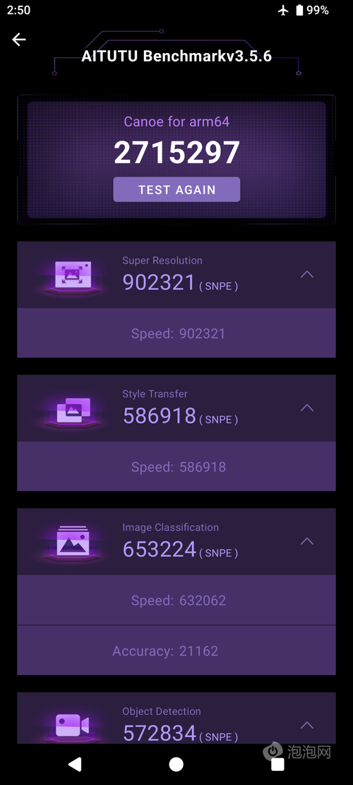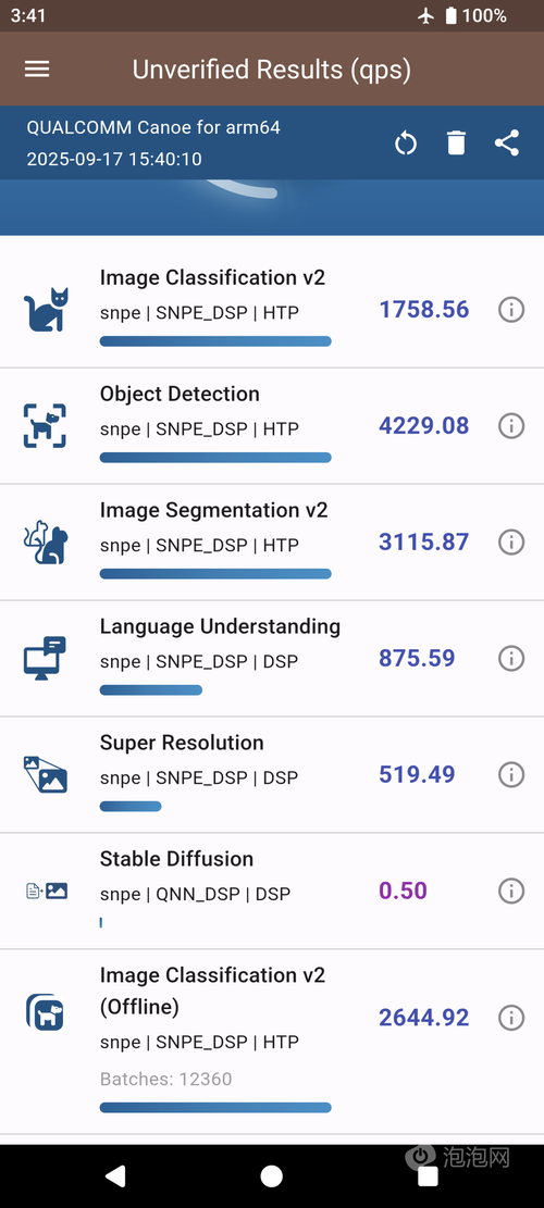 AIMarkAI評(píng)測(cè)使用五種神經(jīng)網(wǎng)絡(luò)RDN、RESNET50、DEEPLABV3、FACENET、BERT模型,機(jī)器識(shí)別圖片內(nèi)容,輸出可能的結(jié)果列表。最終,通過(guò)識(shí)別效率和準(zhǔn)確度來(lái)判斷手機(jī)AI性能,第五代驍龍8至尊版的成績(jī)?yōu)?83737。