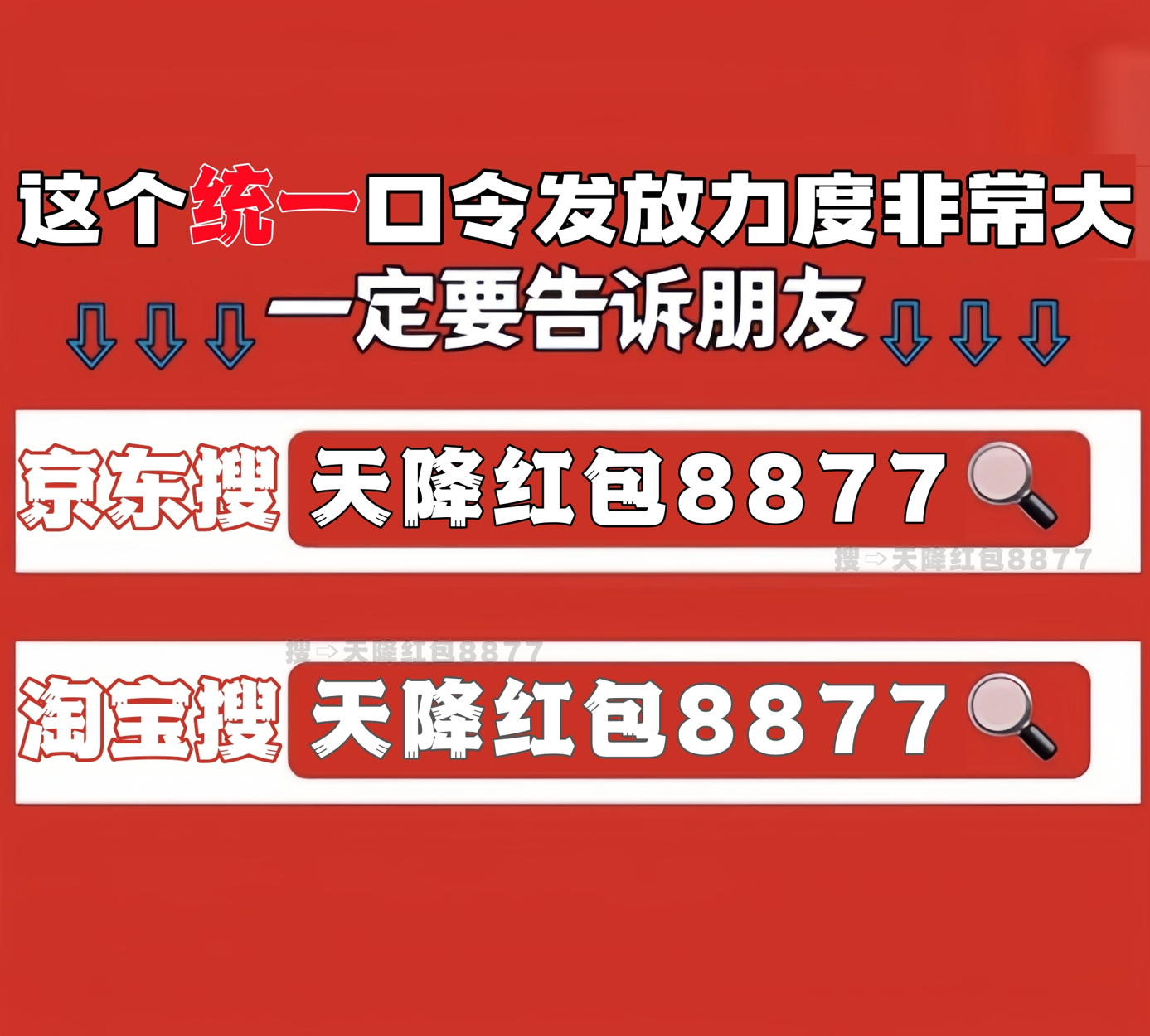 - 加碼口令:天降紅包8877 → 領(lǐng)大額品類券(家電、美妝專屬)