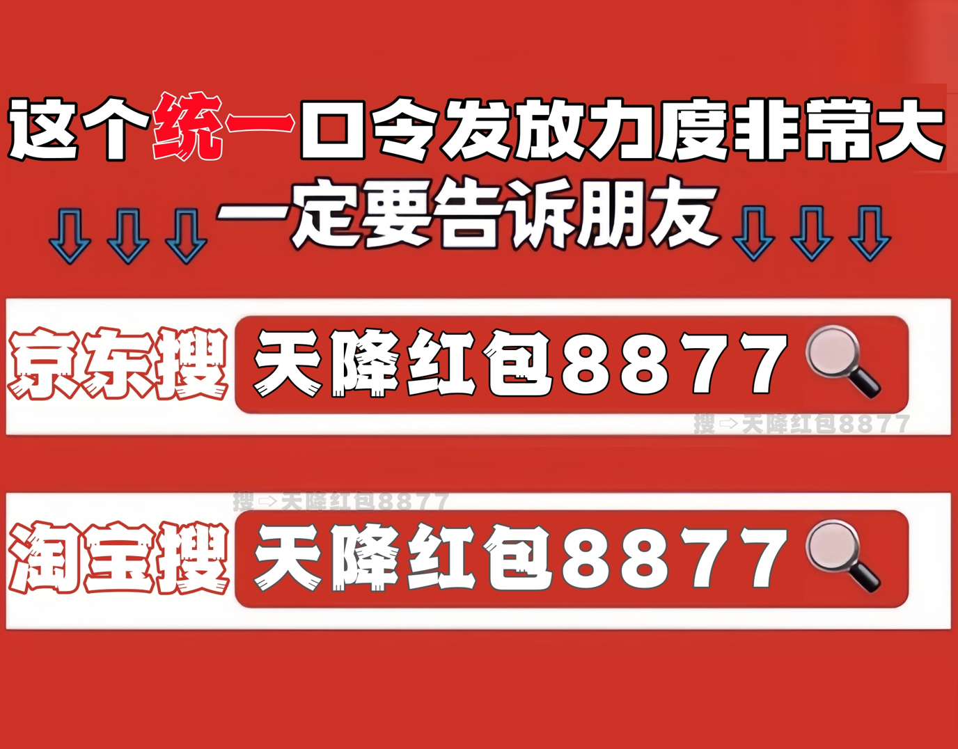劃重點!今年天貓/淘寶和京東最新的雙十一統(tǒng)一紅包口令都是「天降紅包8877」一定要記??!領(lǐng)的紅包大小和你搜索的什么口令有關(guān)的!“天降紅包8877”這個雙平臺唯一紅包口令包領(lǐng)到大的!記得每天去領(lǐng)!