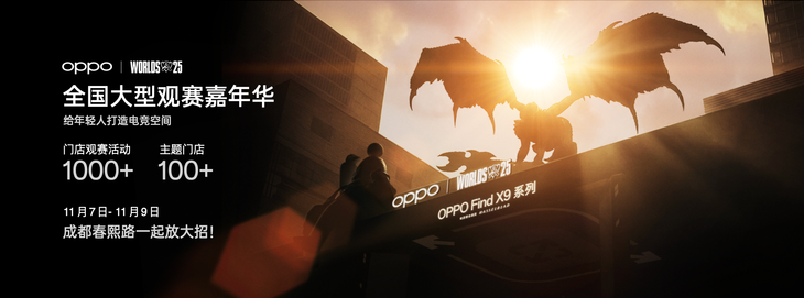 整個 S15 期間,OPPO 將在全國打造超 1000 場線下觀賽活動矩陣,并在超 100 家 OPPO 體驗店開展英雄聯(lián)盟主題活動。同時,11 月 7 日至 9 日在總決賽舉辦地成都,OPPO 還將打造春熙路 OPPO 電競展位等一系列成都電競之旅,并在活動現(xiàn)場提供總決賽門票贏取機會。