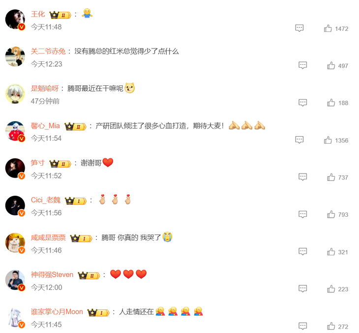 在王騰的微博評論區(qū),小米集團公關部總經(jīng)理王化迅速回應了王騰的動態(tài),并發(fā)送了“擁抱”表情,多個小米前同事也參與了互動,如產(chǎn)品經(jīng)理馨心、老魏等人。這一舉動被外界解讀為“友好破冰”,似乎暗示王騰與小米之間的關系并未因他離職而徹底決裂。這也讓人猜測,王騰被辭退是否真的涉及到特別嚴重的錯誤。
