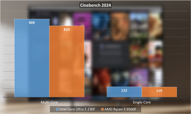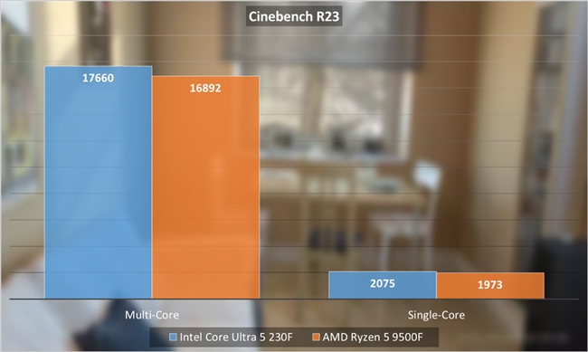 在實(shí)際測試中,酷睿Ultra 5 230F表現(xiàn)要比銳龍5 9500F更強(qiáng)一些。