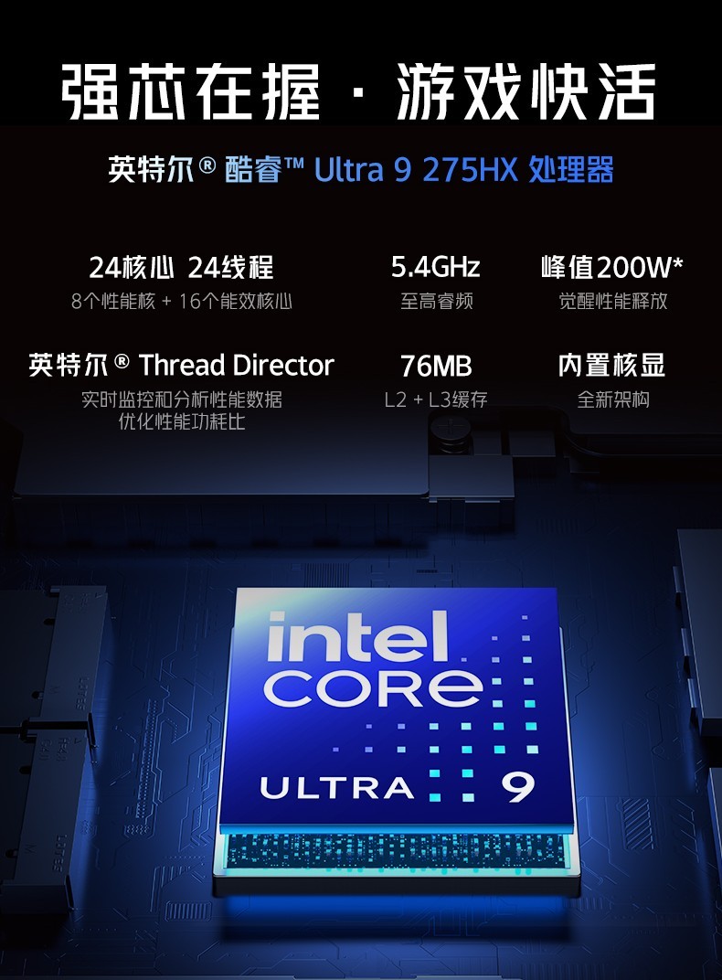 性能是游戲本的核心競爭力,紅魔游戲本16 Pro·2026搭載英特爾酷睿?Ultra9-275HX 處理器。作為移動級處理器中的次旗艦型號,酷睿Ultra 9 275HX有著顯著的多核性能提升,擁有24核心24線程,最高頻率可達5.4GHz,相比14代HX系列處理器性能可提升40%,還支持英特爾獨家APO游戲優(yōu)化技術,針對多線程游戲與多任務處理進行專項優(yōu)化,減少卡頓與延遲。
