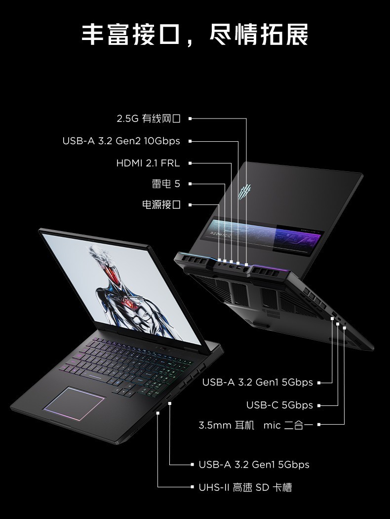 同時紅魔游戲本16 Pro·2026還支持多達10個接口,可擴展能力強,內置99Wh大電池,支持100W的PD快充,續(xù)航能力強勁。