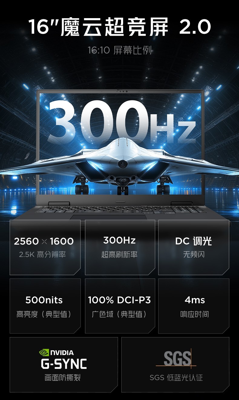 屏幕方面,紅魔游戲本16 Pro·2026搭載2.5K分辨率的魔云超競屏2.0,支持300Hz超高刷新率,響應時間為4ms,最高亮度500 尼特,支持DC調光并通過了SGS低藍光認證,流暢更護眼。