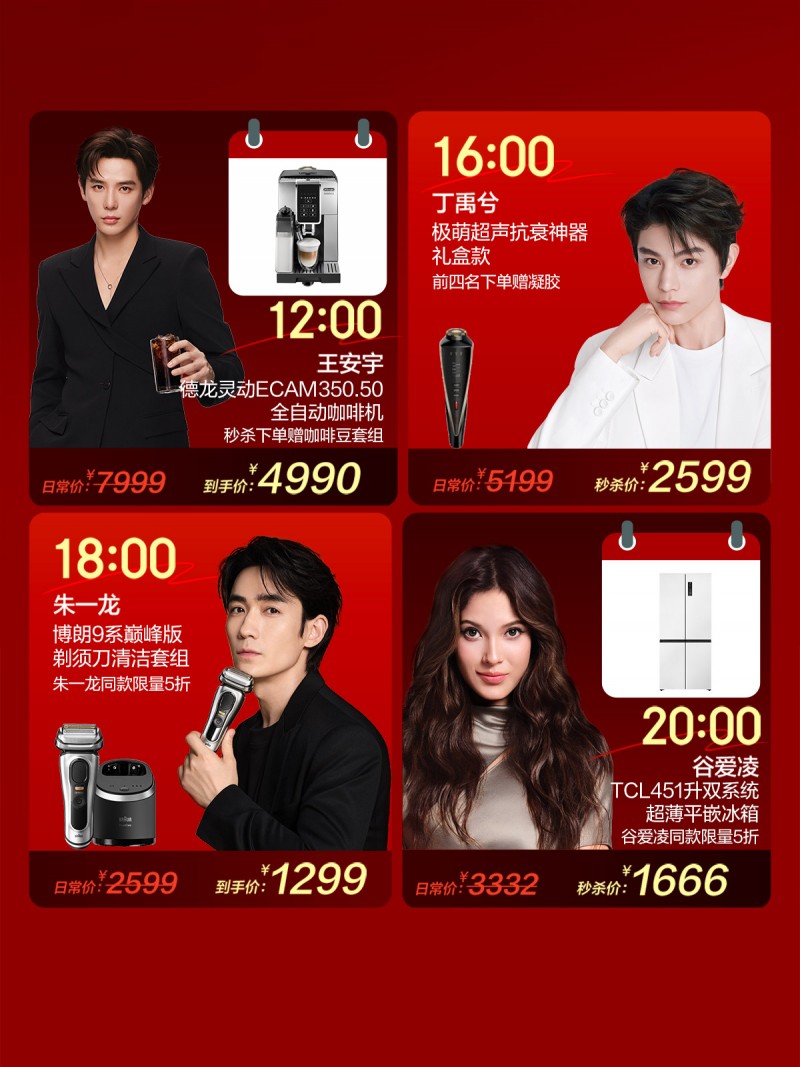 本次超級秒殺日從10月30日0點(diǎn)起,設(shè)置多個黃金秒殺時段,不同時段福利不重樣,確保消費(fèi)者能精準(zhǔn)鎖定心儀商品。比如,早上8點(diǎn),任嘉倫同款美麗雅密實袋套裝率先開搶,購買即附贈專屬周邊;中午12點(diǎn),明星王安宇推薦的德龍咖啡機(jī)開放秒殺,秒殺價直降上千元,還額外贈送咖啡豆套組,讓你在家就能輕松享受專業(yè)級咖啡體驗。