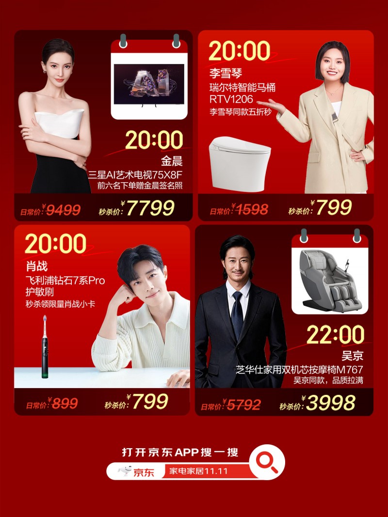 10月30日,京東家電家居 11.11 秒殺日準(zhǔn)時拉開帷幕,為消費(fèi)者帶來一場覆蓋家電家居品類的超值福利盛宴。活動當(dāng)天,在京東APP秒殺活動會場,好家貨低至1折,更有明星私藏同款好物開啟超低價秒殺。無論是追求品質(zhì)生活的消費(fèi)者,還是喜愛明星同款的粉絲,都能在這場秒殺狂歡中找到心儀之選。