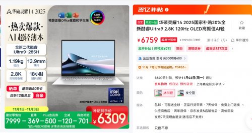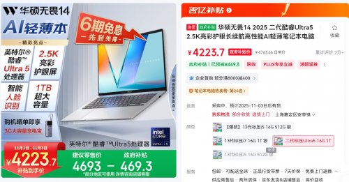雙十一鎖定華碩京東自營(yíng)官方旗艦店,購輕薄本至高享2000元國(guó)補(bǔ)超值鉅惠