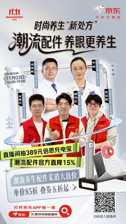 11月3日16點,京東潮流配件「養(yǎng)生」專場火熱來襲!北京大學第三醫(yī)院眼科醫(yī)生布娟、北京大學人民醫(yī)院骨科醫(yī)生徐海林將做客京東3C數(shù)碼采銷直播間,和京東采銷們暢談養(yǎng)生技巧。值得一提的是,直播期間還有抽389元倍思充電寶、潮流配件官方直降15%等福利放送,讓消費者在接受養(yǎng)生常識的基礎(chǔ)上,也能輕松買到又好又便宜的配件。