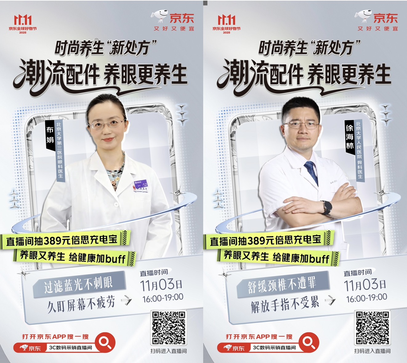 面對長時間使用電子產(chǎn)品帶來的護眼壓力,以及久坐帶來的頸椎問題,北京大學第三醫(yī)院眼科醫(yī)生布娟與北京大學人民醫(yī)院骨科醫(yī)生徐海林兩位權(quán)威專家也給出了專業(yè)的意見。布娟醫(yī)生從用眼健康角度,分享如何通過防藍光配件、屏幕調(diào)節(jié)等方式緩解視覺疲勞;徐海林醫(yī)生則聚焦脊柱保護,講解筆記本支架、顯示器支架等產(chǎn)品對坐姿與骨骼健康的積極影響。另外在11月3日的直播間,兩位專家還將現(xiàn)場解答用戶關(guān)心的養(yǎng)生問題,幫助觀眾實現(xiàn)“養(yǎng)眼又養(yǎng)生,給健康加buff”。