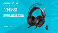 以沉穩(wěn)氣場,壓制全場, 它的強勢突襲讓對手疲于奔命, 雷柏VH500虛擬7.1聲道游戲耳機, 聽辨,絕地出擊。
