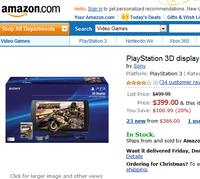 ????泡泡網(wǎng)資訊頻道12月22日?自從今年十月SONY發(fā)布PlayStation 3D Display以來(lái),不少PS3玩家躍躍欲試,想看看這臺(tái)游戲機(jī)專用3D顯示器到底有何過(guò)人之處。不過(guò)這可苦了國(guó)內(nèi)玩家,由于目前只在部分地區(qū)上市,所以只能通過(guò)代購(gòu)的方式來(lái)購(gòu)買正品顯示器。近期小編無(wú)意發(fā)現(xiàn),已經(jīng)有臺(tái)灣玩家在美國(guó)亞馬遜商城以399美元出手購(gòu)買,并且空運(yùn)直達(dá)臺(tái)灣。昨天,該玩家在臺(tái)灣3C網(wǎng)站ePrice