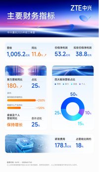 在數(shù)字經(jīng)濟加速發(fā)展的背景下,中興通訊于10月28日披露2025年三季報,交出一份亮眼成績單:2025年1-9月公司營收首次突破千億大關(guān),達1,005.2億元,同比增長11.6%%,歸母凈利潤53.2億元。這一成績的背后,是中興通訊聚焦核心技術(shù)、強化全棧能力,在網(wǎng)絡(luò)、算力、家庭與個人終端領(lǐng)域協(xié)同發(fā)力的戰(zhàn)略成果。在網(wǎng)絡(luò)方面,中興通訊通過AIR系列方...