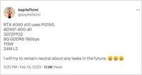 張帆 · 2023-02-20 19:37 - RTX 4070竟有三種顯存容量?10GB、12GB、16GB同時(shí)出現(xiàn)