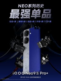 姜思文 · 2024-07-15 11:01 - 手感最 好的8Gen3雙芯旗艦 iQOO Neo9S Pro+將于7.11發(fā)布