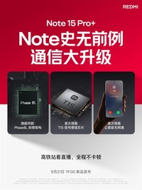 REDMI Note 15系列已經(jīng)正式官宣,計(jì)劃于8月21日(周四)19:00發(fā)布。此次發(fā)布將揭曉Note 15 Pro+的多項(xiàng)亮點(diǎn),特別是該機(jī)首次搭載自研的澎湃T1S信號(hào)增強(qiáng)芯片,這款芯片同樣出現(xiàn)在K80 Pro上,標(biāo)志著REDMI在提升通信性能方面邁出了重要一步。