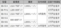 泡泡網(wǎng)投影機(jī)頻道8月5日 作為3LCD投影技術(shù)的持有者,愛普生一如既往的發(fā)布了新一代商務(wù)投影機(jī),共包括六款新機(jī)型,分別是EB-X14、EB-W12、EB-X12、EB-S12、EB-S02以及EB-1880。據(jù)悉,這些新品將率先登陸日本市場,國內(nèi)將在晚些時候發(fā)布。 從性能與配置來看,這六款產(chǎn)品將主打商務(wù)市場,覆蓋SV