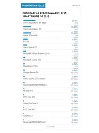 ????外媒 phonearena 之前舉辦了 2015 年最佳設備的投票活動,統(tǒng)計了國外網(wǎng)友的有效投票之后,今年三星力壓蘋果奪得了第一,三星 Galaxy S6 Edge 和 Note 5 成為讀者眼中最佳手機。????首先是 2015 年最佳智能手機,三星 Galaxy S6 Edge 高居榜首,得票率為 25.6%%,而 S6 和 iPhone 6s 分別以 16.27%% 和 15.97%% 位