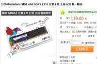 劉小強(qiáng) · 2011-12-07 00:17 - 橫掃網(wǎng)絡(luò)低價(jià) 威剛內(nèi)存淘寶僅售99元