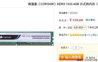 - 親民低價(jià) 海盜船4GB 1333內(nèi)存報(bào)價(jià)139