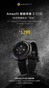 張萌 · 2019-08-29 14:30 - 僅需1299元!Amazfit智能手表2 ECG版:2.5D水漾屏+NFC